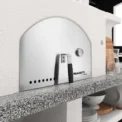 Talna površina pečice ustreza uredbi (ES) št. 1935/2004, kar zagotavlja popolno varnost pri stiku z živili. Vrata iz nerjavečega jekla so opremljena s priročnim termometrom in ročajem.