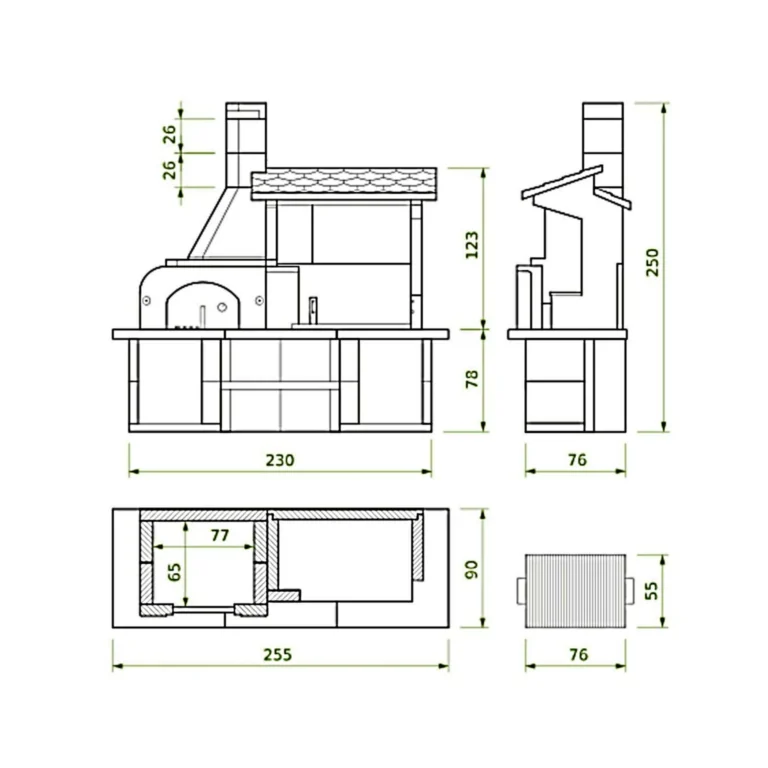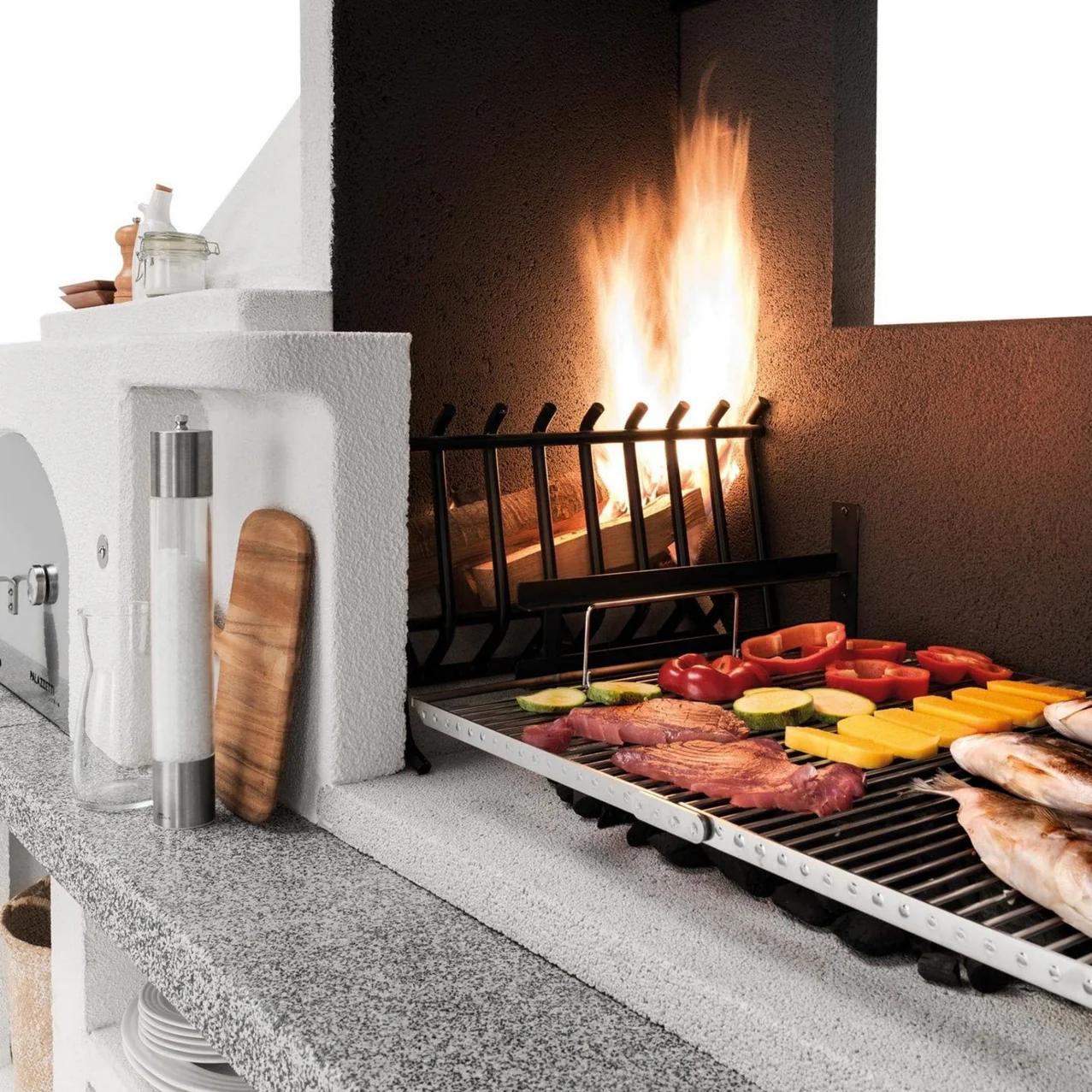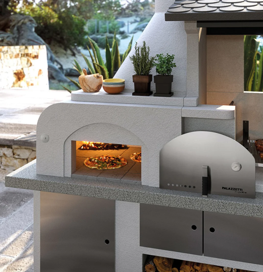 Palazzetti Antille je kompaktna, a popolnoma opremljena zunanja kuhinja, ki združuje ognje odporno peč na drva s prostorno notranjostjo 77 × 65 cm in visokozmogljiv žar na drva ali oglje, vse dopolnjeno z Marmotech delovno površino v elegantni sivi granitni izvedbi. Namenjena je ambicioznim uporabnikom, ki želijo uživati v peki, druženju in višji kakovosti bivanja na prostem.