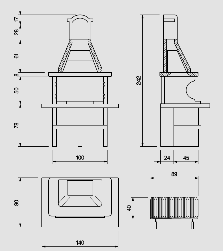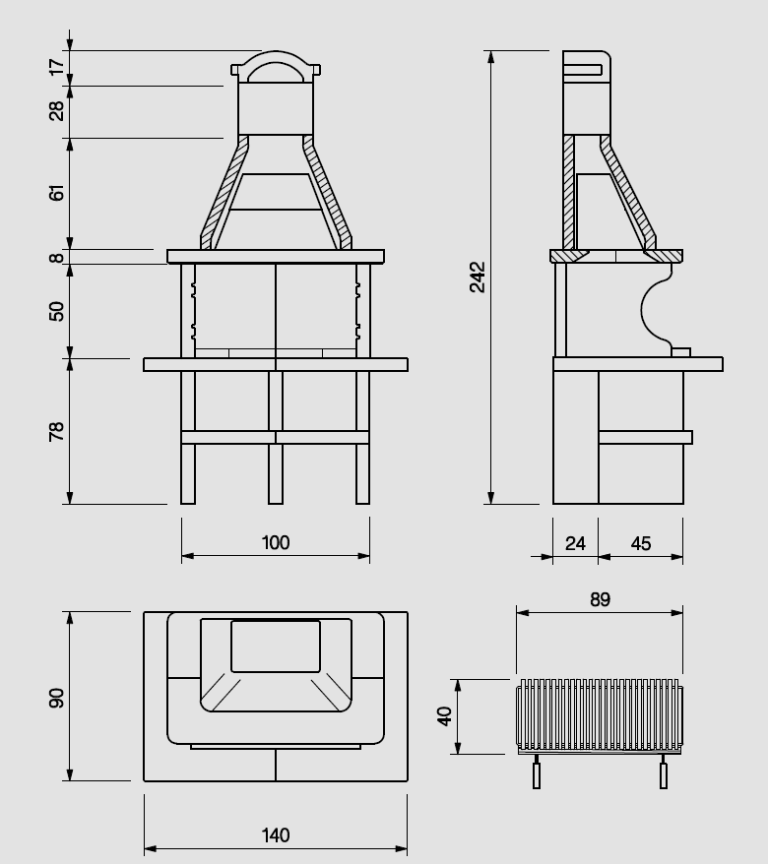 - Podstavek in kamin sta izdelana iz Marmotecha. Barvanje potrebuje zgolj kapuca kamina.