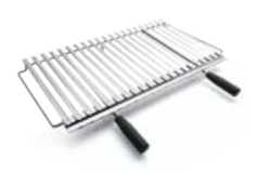 - Rešetka za žar iz nerjavečega jekla v velikosti 99×40 cm s lesenimi ročaji.