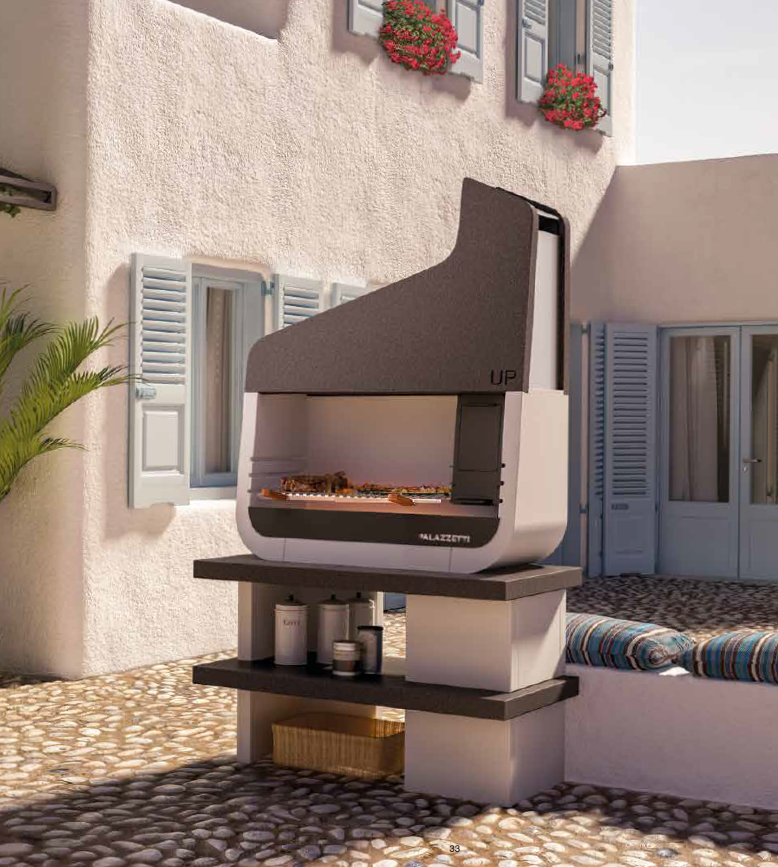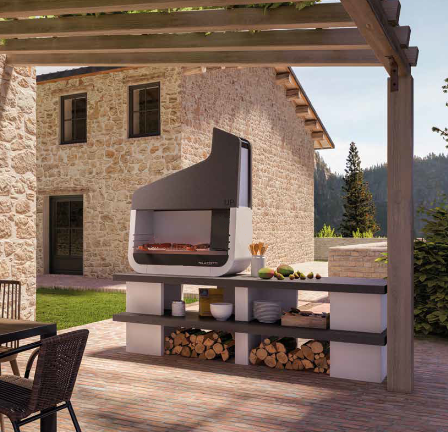 Vrtni kamini Palazzetti združujejo: visoko kvaliteto, čudovito estetiko in preprosto uporabnost v en sam izdelek. Združujejo različne možnosti pečenja; na rešetki (gril), na plošči, na vrtljivem ražnju in v pečici (odvisno od modela).