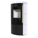 Korpus paleniska piecyka Ceres KRM został obłożony ceramiką akumulacyjną dostępną w 4 nowoczesnych wersjach wykończenia: Biały mat, biały połysk, czarny mat oraz czarny połysk.