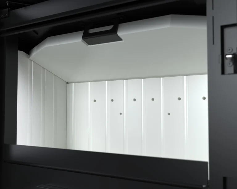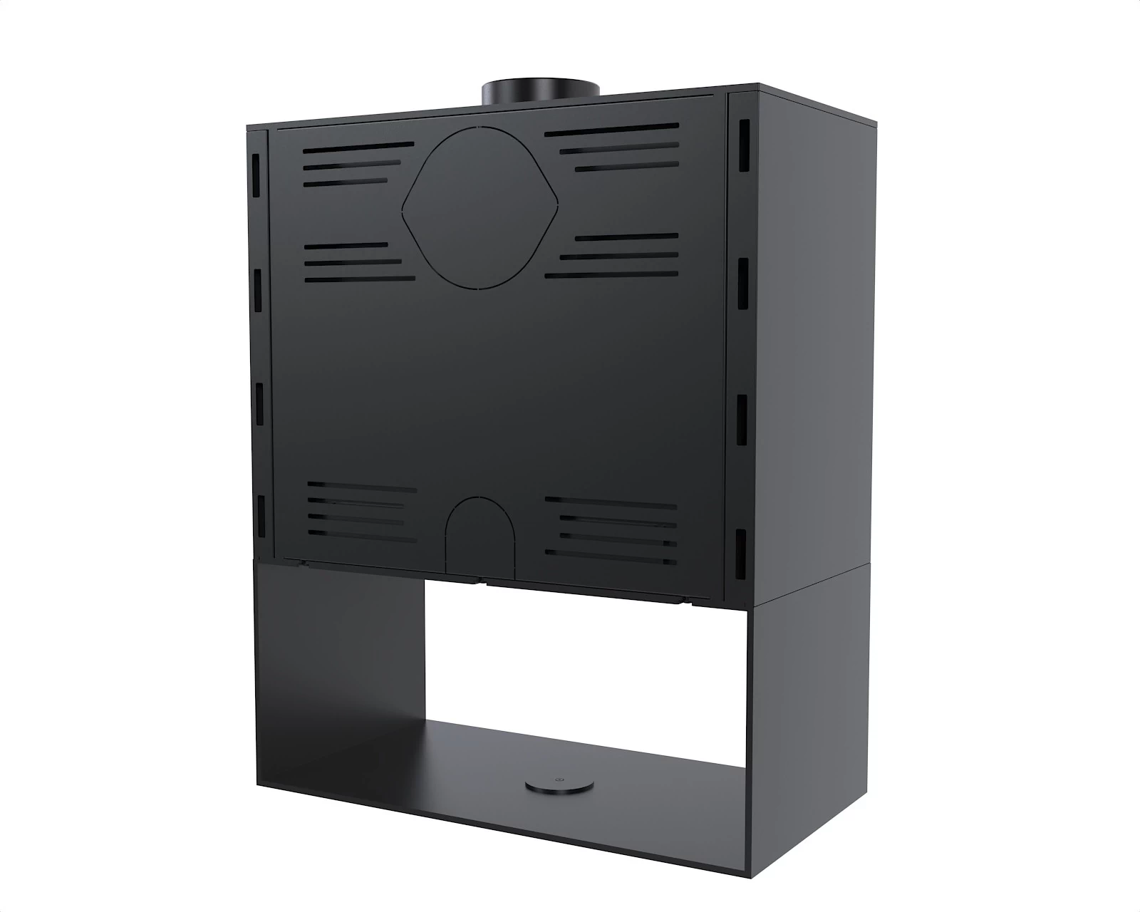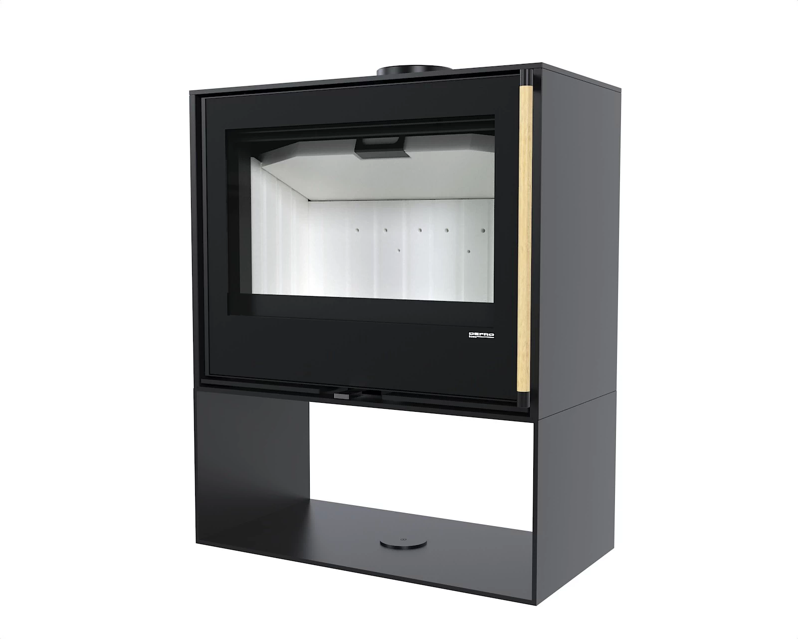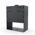 Taka konstrukcja skutecznie oddaje ciepło do pomieszczenia, jednocześnie stanowiąc solidną ochronę komory spalania. Wnętrze wyłożono żaroodpornymi panelami z betonu ceramicznego (ceramiton), które dodatkowo wzmacniają proces spalania i utrzymują stałą temperaturę w komorze. Front komory to szczelne drzwiczki z szybą odporną na wysokie temperatury oraz klamka ułatwiająca bezpieczne otwieranie.
