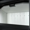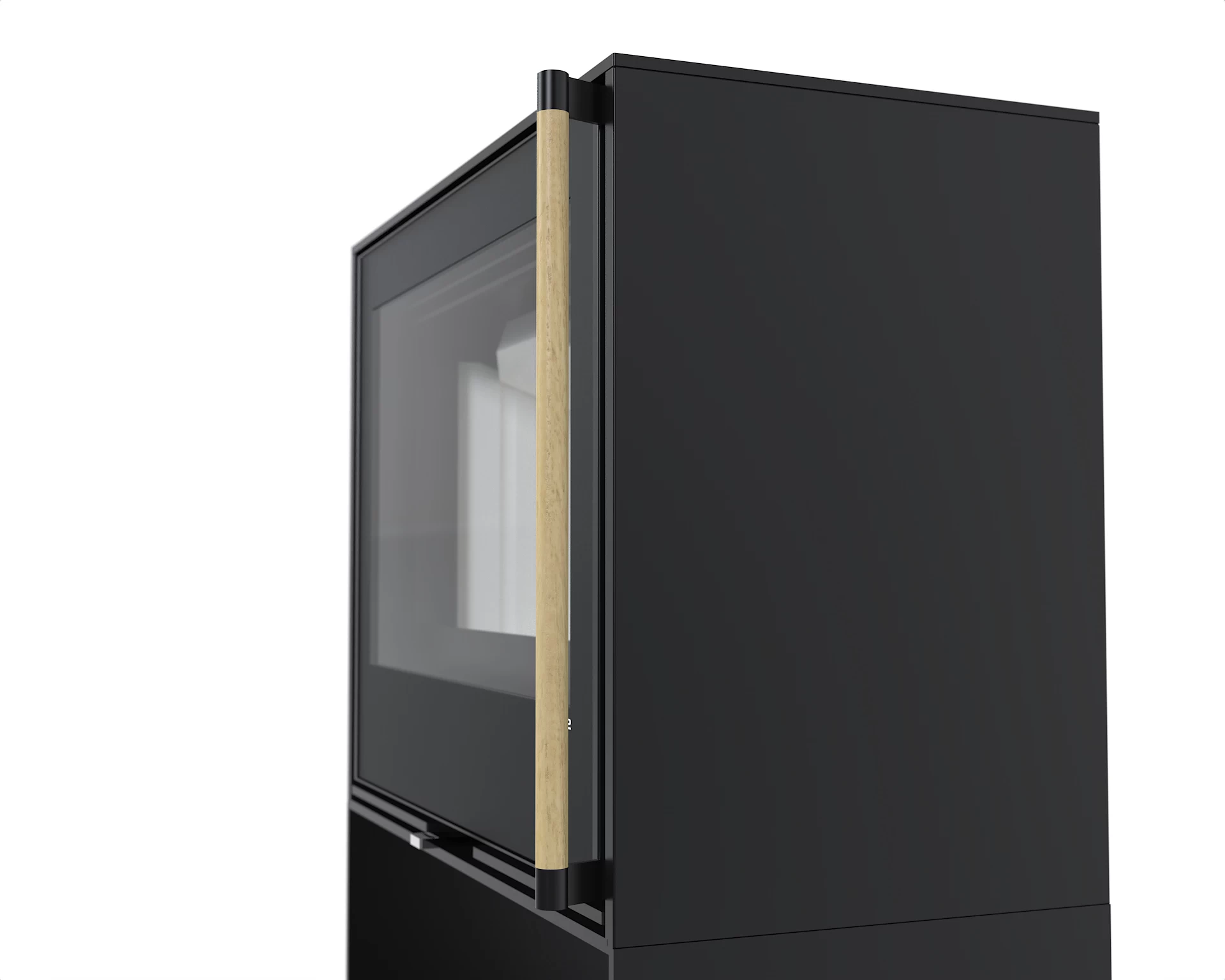 Korpus paleniska piecyka Cuben został obłożony ceramiką akumulacyjną dostępną w 4 nowoczesnych wersjach wykończenia: Biały mat, biały połysk, czarny mat oraz czarny połysk.