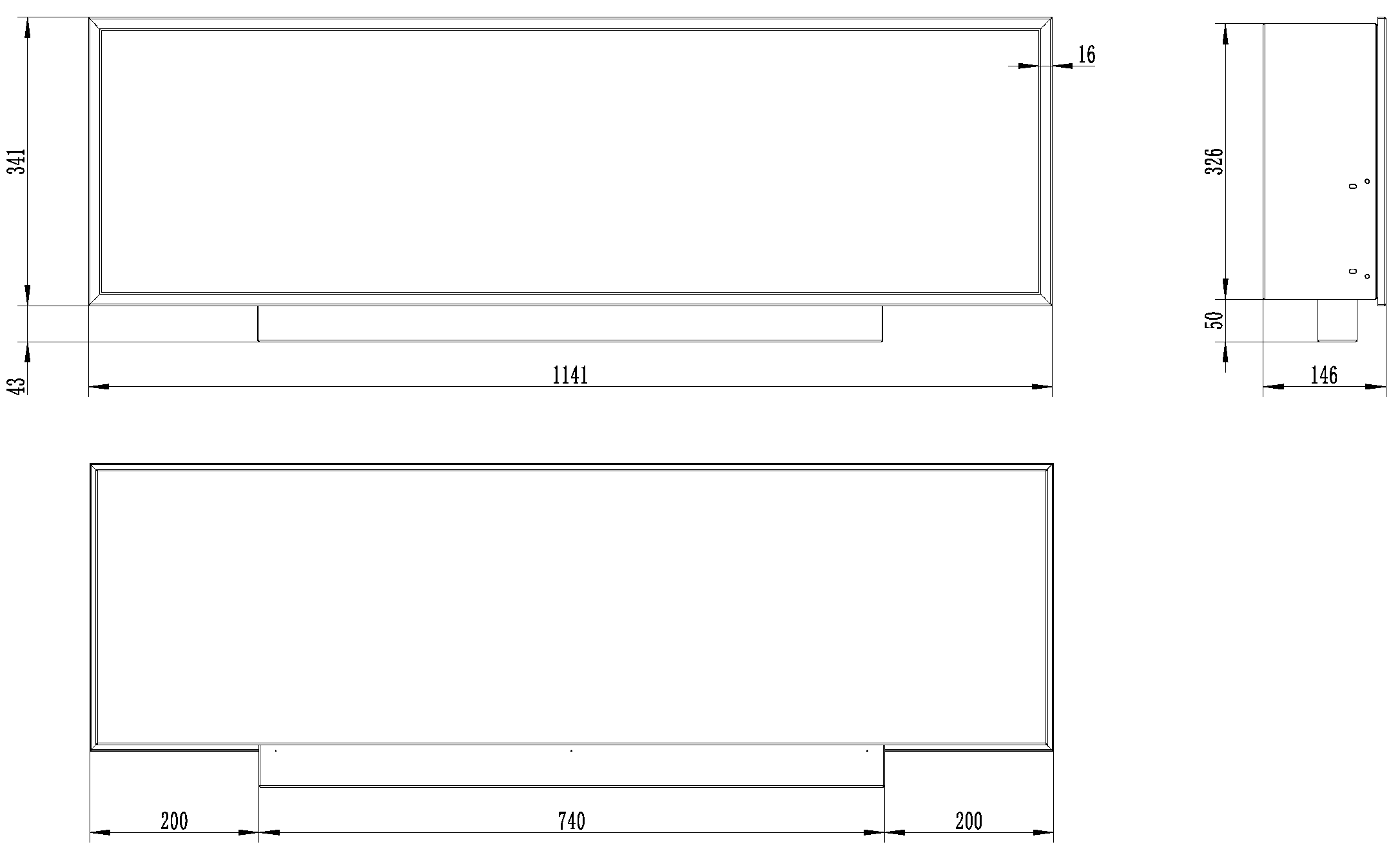 Dimenzije (VxŠxG) 340 mm x 1140 mm x 150 mm
