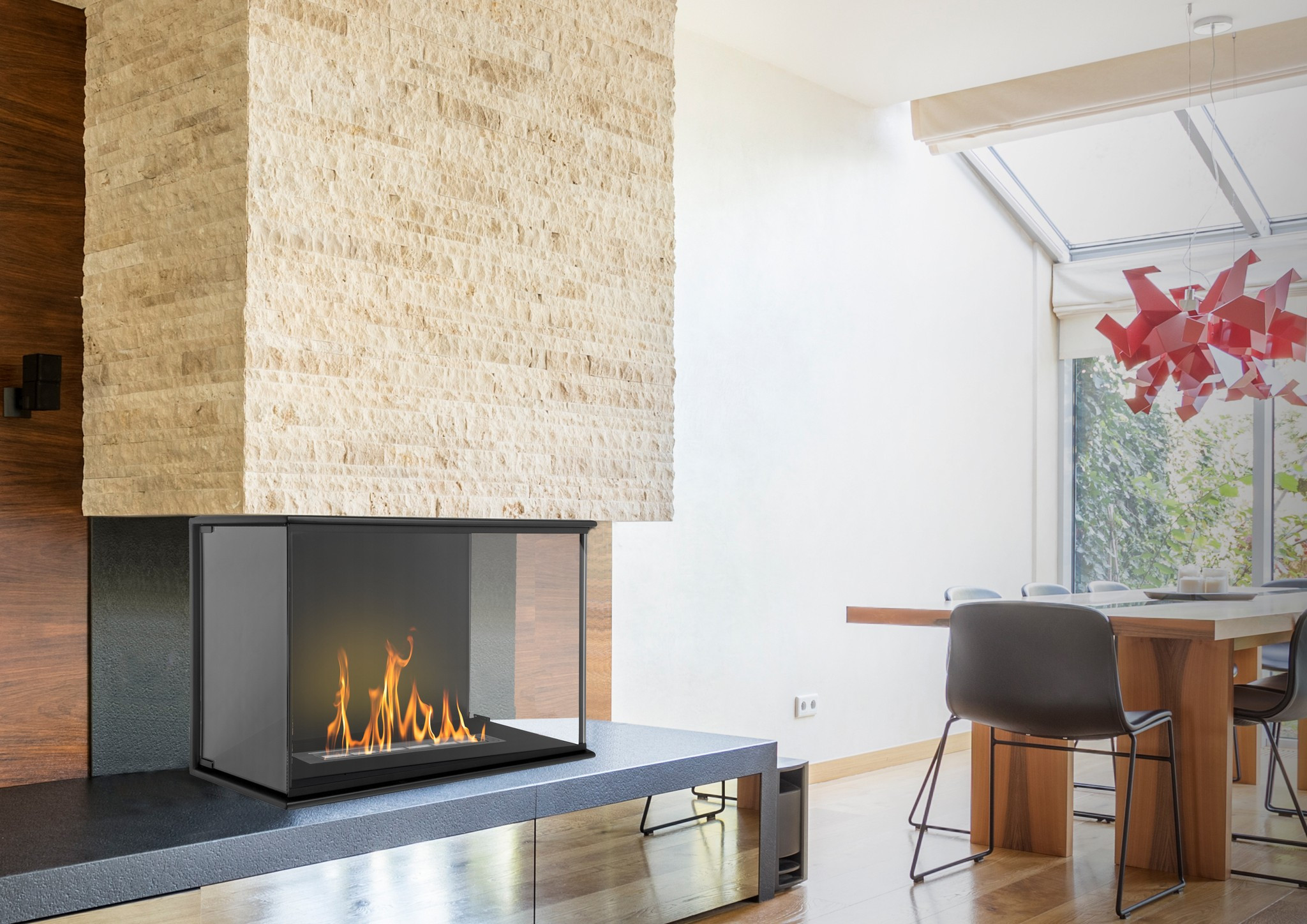 The tempered glass makes the fire the focal point of any room, providing visibility from three different sides. Its unique design allows you to create a cosy atmosphere and a unique climate, ideal for relaxing and meeting loved ones.