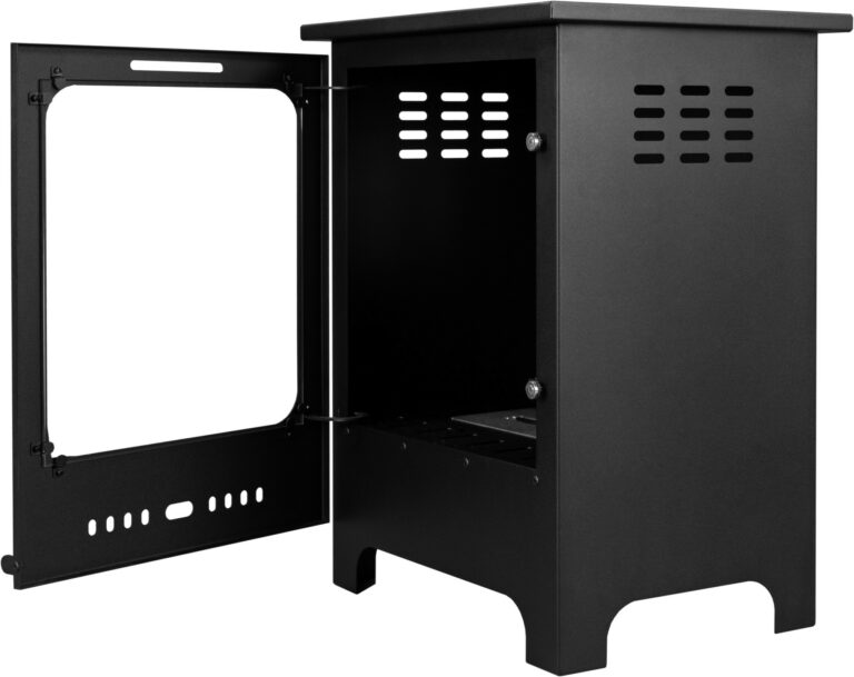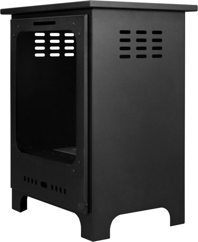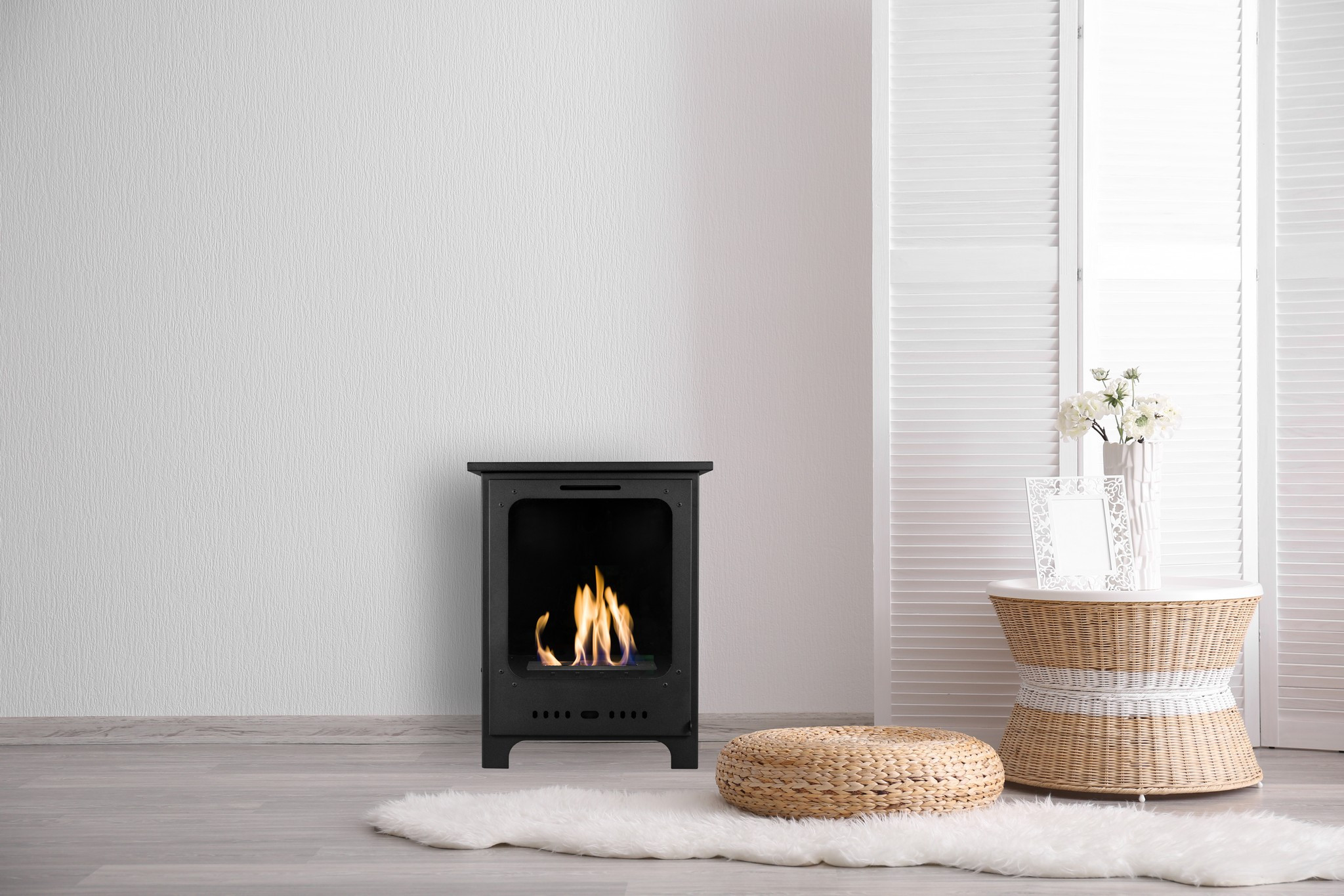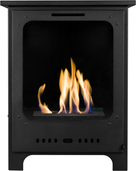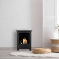 This free-standing bio-fireplace, stylised as a small cooker, is equipped with an opening door with a glass pane that allows you to admire the flames. Thanks to this solution, the bio-fireplace is safe for children and pets, as it prevents direct access to the flames, while maintaining an attractive appearance and functionality.