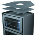 Kaminska peč Carbel – Atlas Vogalni. Kaminska peč Atlas vogalni je namenjen za postavitev v kot. Pod kuriščem se nahaja prostor za shranjevanje drv. Ima zelo prostorno izgorevalno komoro za boljše delovanje in energetske učinkovitosti. Večji nadzor nad zgorevanjem, kar omogoča optimalno prilagajanje primarnega in sekundarnega zraka z eno samo ročico. Kurišče ponuja tudi možnost pečenja, saj ima na voljo dva nivoja za postavitev rešetke. Zgornja pečica iz nerjavečega jekla z ognjevarno podlago in termostatom omogoča nadzor in vzdrževanje temperature za pravilno kuhanje. Ognjevarna notranja enota se lahko odstrani v primeru čiščenja pečice. Pladenj za pečico je priložen. Vključuje praktično odprtino za čiščenje zgornje komore pečice. V primeru hitrejšega ogrevanja prostora je na voljo tudi ventilator. Ima register za enostavno čiščenje dimnih cevi brez potrebe po razstavljanju peči.