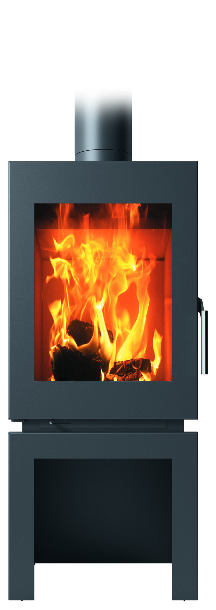 Kaminska peč na drva Carbel – Maia Cube je peč z odličnim pogledom na kurišče. Pod kuriščem se nahaja niša za drva. S pomočjo ročice na vrhu peči in ročice spodaj lahko reguliramo tako primarni kot sekundarni zrak. Na desni strani ima kovinsko ročko za odpiranje vrat. V kurišču se nahaja ognjevzdržni cement v beli barvi, ki omogoča odlično akumulacijo. Ognjevarni cement zaradi svoje tehnologije ostane bel tudi po kurjenju. Dimniški izpust se nahaja zgoraj.