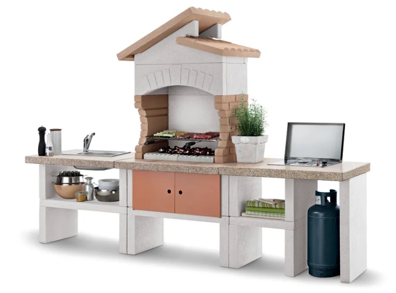 Topel design s poudarki iz rdečkaste opeke, trpežni materiali ter inovativni in tehnično izpiljeni elementi bodo poskrbeli za vaš novi najljubši prostor. Preselite svoje kuharsko ustvarjanje in družabne dogodke na prosto. Modularne kuhine Palazzetti omogočajo popolno prilagoditev vašim željam in prostoru.