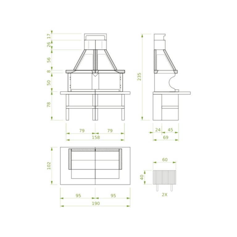Dimenzije kamina: 190 × 235 × 102 cm (Š × V × G)