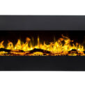 The front panel is made entirely of glass.A large black frame around the ember bed highligths its exclusivity.
