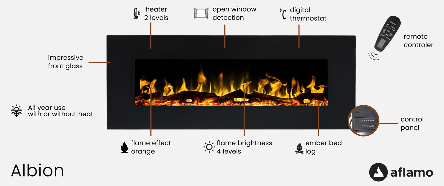 Timer automatically switches off the fireplace. Set it and forget about everything. You don’t have to worry that the fireplace may be running all night if you fall asleep.