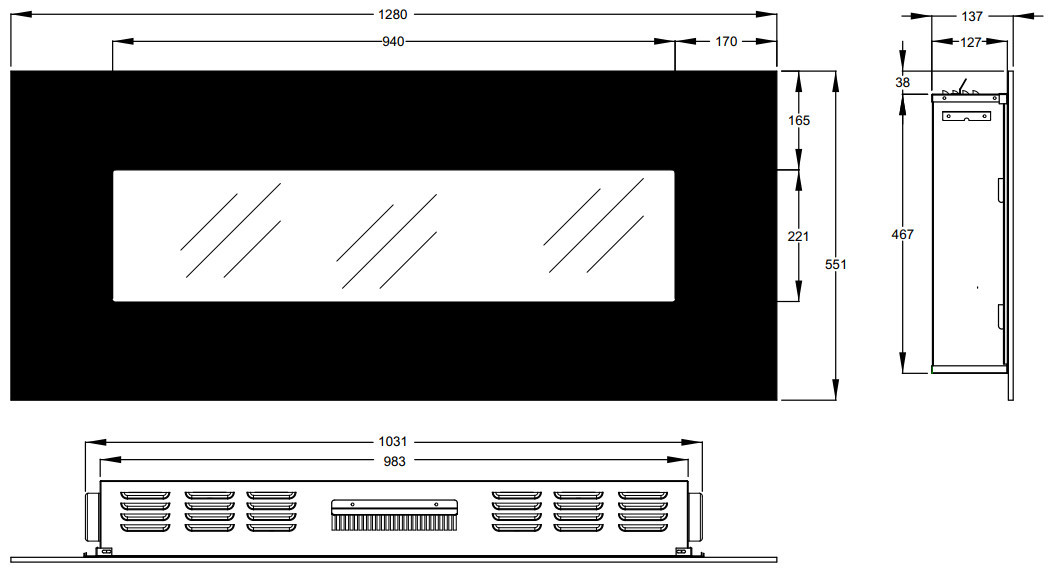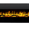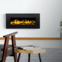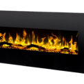 The front panel is made entirely of glass.A large black frame around the ember bed highligths its exclusivity.