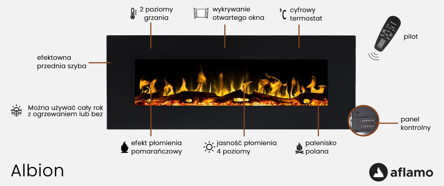 Timer automatically switches off the fireplace. Set it and forget about everything. You don’t have to worry that the fireplace may be running all night if you fall asleep.