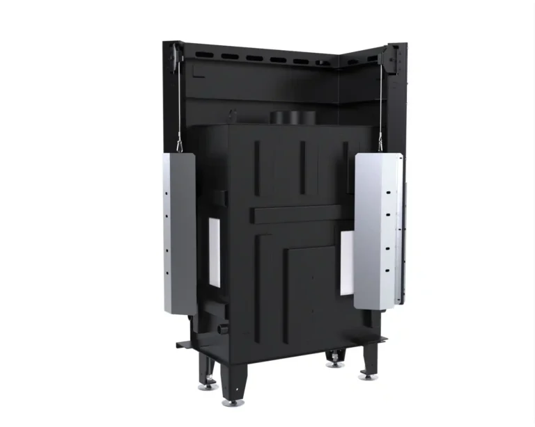 Model Impuls ME BL G o mocy nominalnej 10 kW to wydajny wkład kominkowy powietrzny przeznaczony do salonów open‑space, loftów oraz parterowych domów energooszczędnych. Narożny front z szybą w kształcie litery „L” prezentuje ogień z dwóch stron, więc kominek integruje strefę wypoczynku i jadalnię. Króciec Ø125 mm umożliwia podłączyć powietrze z zewnątrz budynku, co stabilizuje proces spalania przy szczelnych oknach.