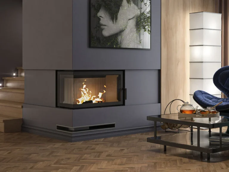 Model Impuls ME BL z narożnym przeszkleniem i mocą nominalną 10 kW został stworzony dla salonów open‑space, loftów oraz energooszczędnych domów parterowych. Konstrukcja rozprowadza ciepło do sąsiednich pokoi kanałami DGP, więc ogrzewanie pomieszczeń o łącznej powierzchni 120–140 m² jest realne nawet przy mroźnej pogodzie.