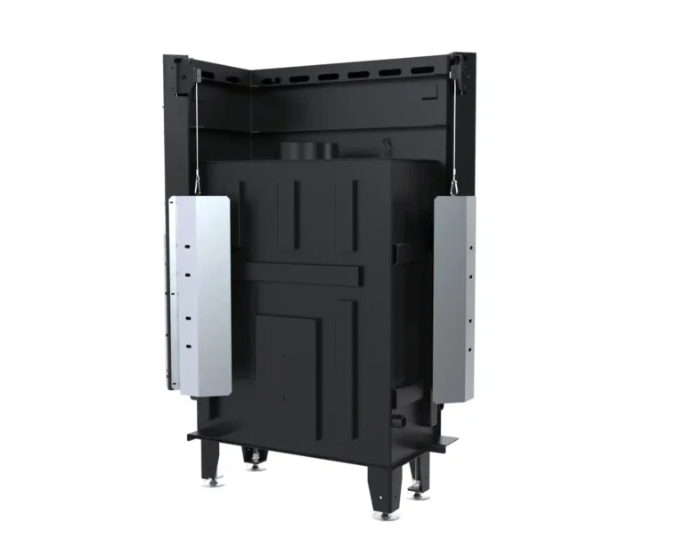 Kominek pracuje w systemie konwekcyjnym i może współpracować z instalacją rekuperacyjną oraz rozprowadzać ciepło do innych pomieszczeń przez kanały DGP. Konstrukcja łączy stal, żeliwo i trwałe płyty paleniskowe, co przekłada się na wysoką odporność i stabilną pracę w długim okresie użytkowania. Szczelna obudowa wspiera równowagę powietrzną w domu, a opcjonalny system akumulacyjny umożliwia dłuższe utrzymanie ciepła po wygaśnięciu ognia.