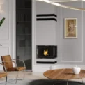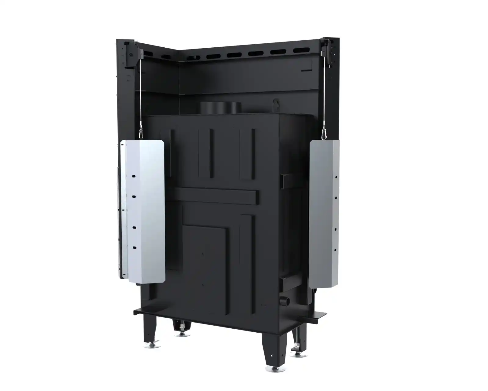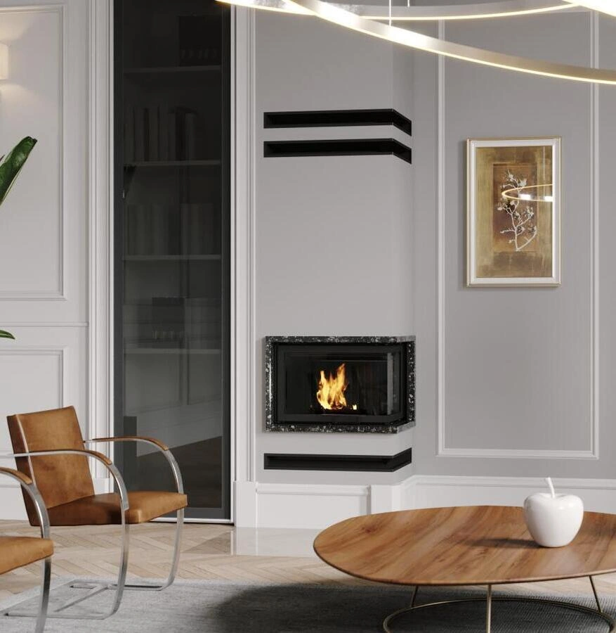 Czarne detale, jednolita blenda i możliwość zastosowania różnych typów zabudowy – od płyt kominkowych po klasyczne kafle – pozwalają dopasować urządzenie do każdego stylu wnętrza. To wszechstronny kominek, który łączy wysoką wydajność z elegancką formą i komfortem codziennego użytkowania.