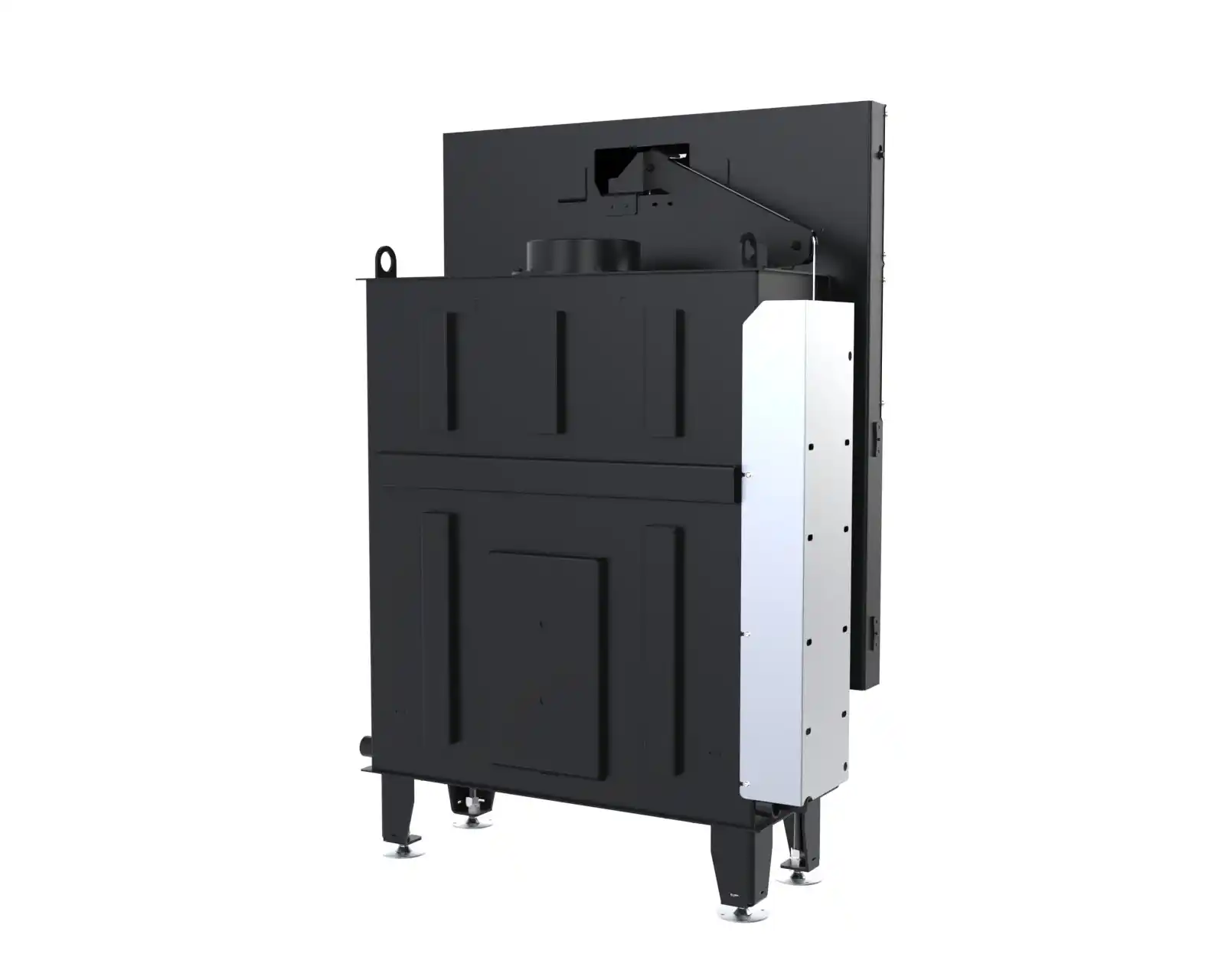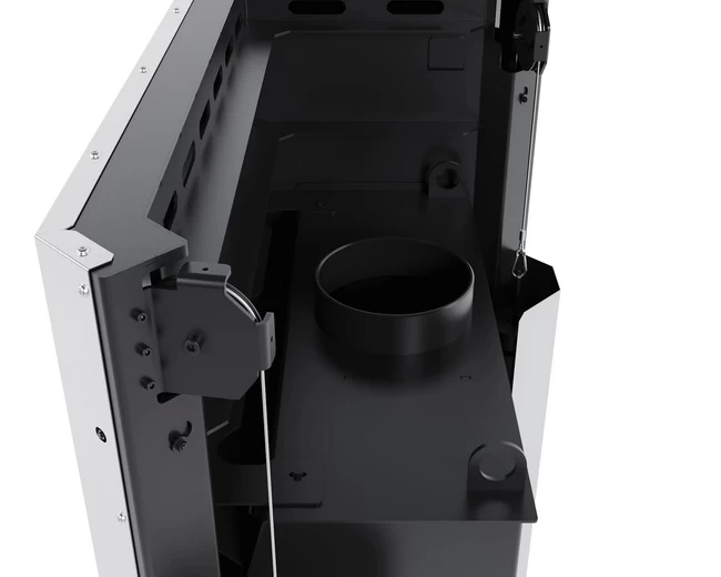 Zastosowanie dodatkowego systemu samodomykającego utrzymuje wysoką szczelność paleniska i ogranicza ucieczkę gorącego powietrza z komory spalania.