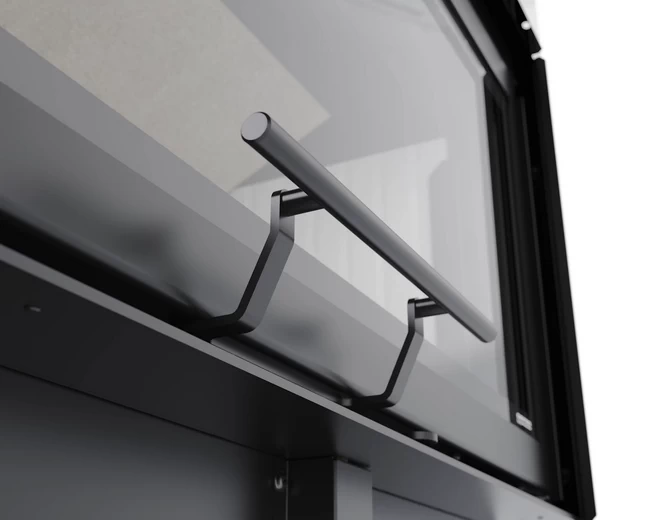 Mechanizm podnoszenia drzwiczek typu gilotyna w Defro Home Impuls ME G oparty jest na prowadnicach kulkowych i stalowych linkach odpornych na wysokie temperatury. Płynna praca gilotyny umożliwia łatwe otwieranie i zamykanie drzwiczek bez nadmiernego wysiłku.