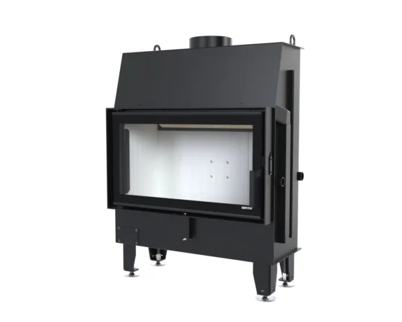 Konstrukcję wzmacniają gęsto rozmieszczone radiatory na ścianach zewnętrznych urządzenia, co przyspiesza wymianę cieplną i podnosi sprawność grzewczą. Wysoki czopuch Ø150 mm stabilizuje ciąg w kominie, a system DGP rozprowadza gorącego powietrza kratkami do łączonych pomieszczeń.
