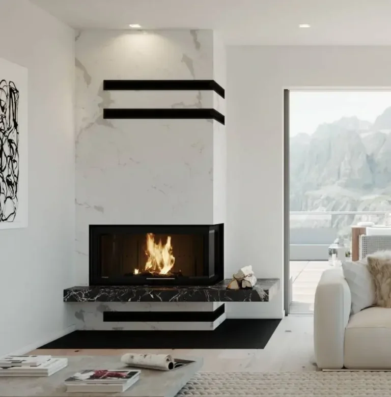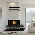 Model Intra LA BP G oferuje moc nominalną 16 kW, przez co z powodzeniem zasila otwarte salony o powierzchni 60–70 m², lofty z antresolą oraz energooszczędne domy jednorodzinne. Narożna szyba eksponuje ogień z dwóch stron, więc kominek scala część wypoczynkową, kuchnię i jadalnię.