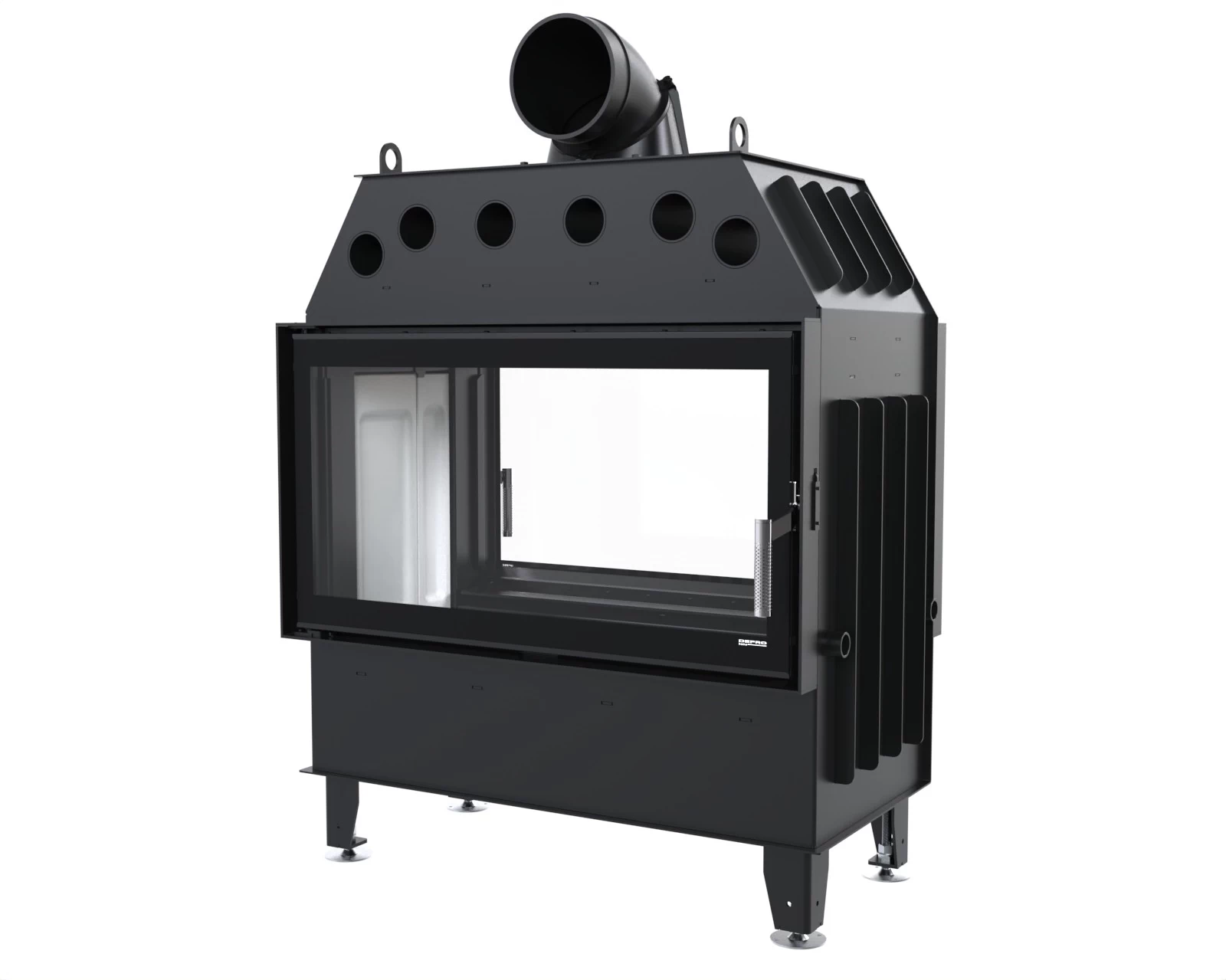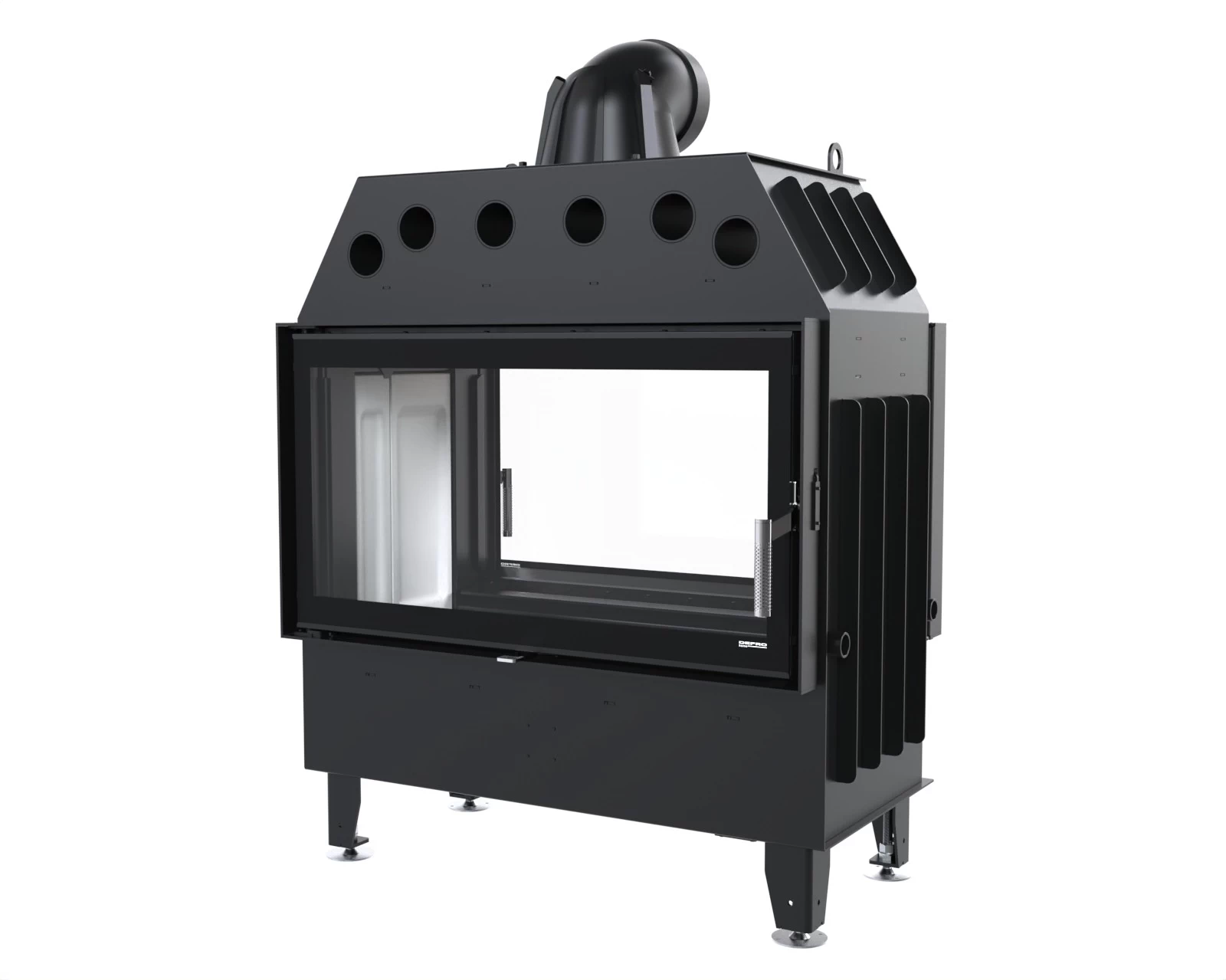 Ten model oferuje ciepłe powietrze rozprowadzane w systemie dystrybucji gorącego powietrza, co sprzyja komfortowemu ogrzewaniu. Jego stalowy korpus i żeliwny ruszt nadają mu trwałość, a zastosowane rozwiązania sprzyjają ograniczeniu emisji szkodliwych substancji. Narożny front wkładu zapewnia niepowtarzalny klimat, a czarny kolor wkomponowuje się w każde wnętrza. Wkłady do kominków z tej serii uwzględniają różne rodzaje wkładów, w tym kominki z płaszczem, by sprostać indywidualnym potrzebom użytkowników.