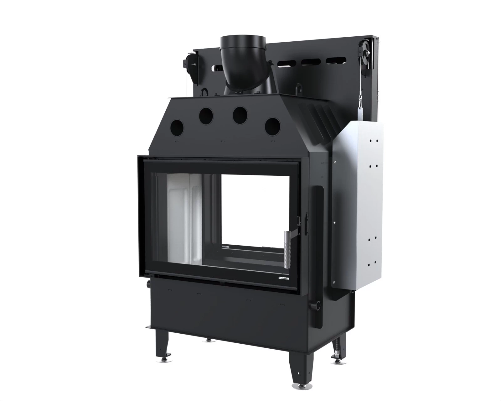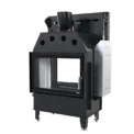 Wkład kominkowy jest oparty na stalowych i żeliwnych podzespołach, dzięki czemu znakomicie radzi sobie z intensywnym procesem spalania. Narożny front, czarna szyba i system czystej szyby sprzyjają komfortowemu użytkowaniu. To wkład kominkowy powietrzny, który rozprowadza ciepłe powietrze za pomocą kratki, zapewniając przyjemną atmosferę. Wypełnia przestrzeń gorącym powietrzem i wyróżnia się stabilną pracą, co docenią zwolennicy kominków z płaszczem lub rekuperacją.