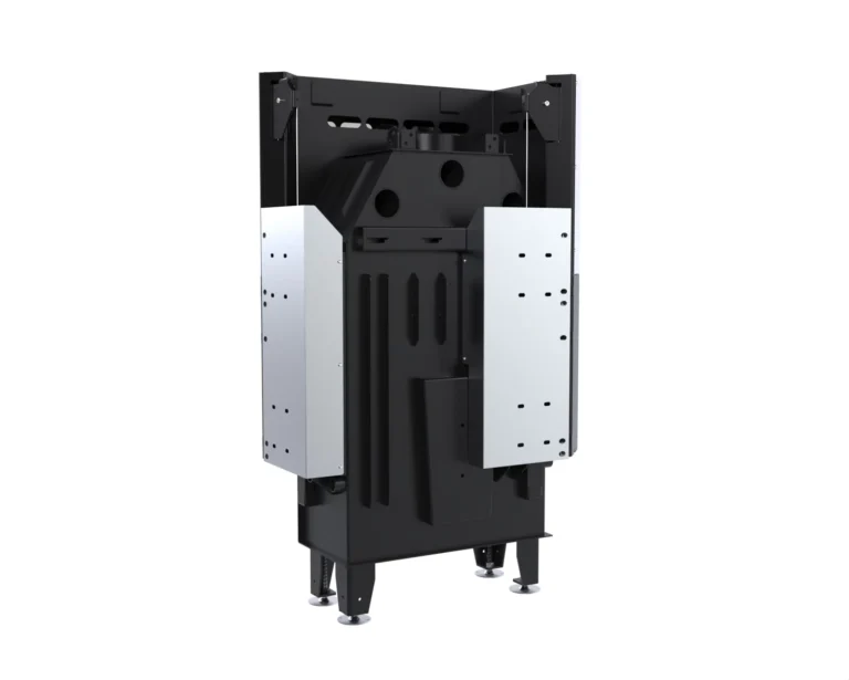 W komorze spalania zastosowano opłomki – specjalne rury wymuszające wtórny obieg spalin. To sprawia, że podnosi się sprawność cieplna wkładu, a spaliny dłużej utrzymują wysoką temperaturę. Takie rozwiązanie pozwala lepiej wykorzystać energię z drewna i ograniczyć ilość sadzy.