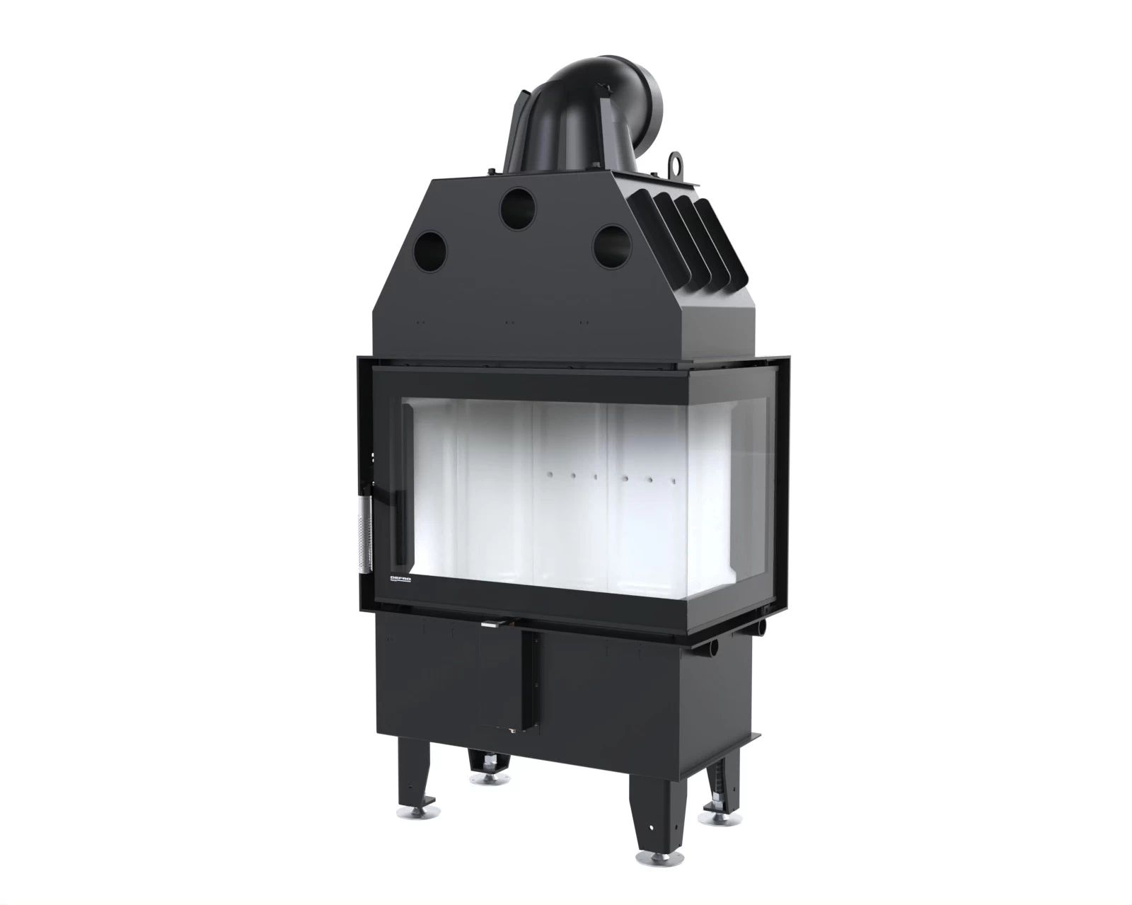 W efekcie łatwiej utrzymać przejrzystość szyby i cieszyć się widokiem palenia w kominku. Wytrzymała szyba podkreśla nowoczesny charakter wkładów kominkowych powietrznych Defro Home.