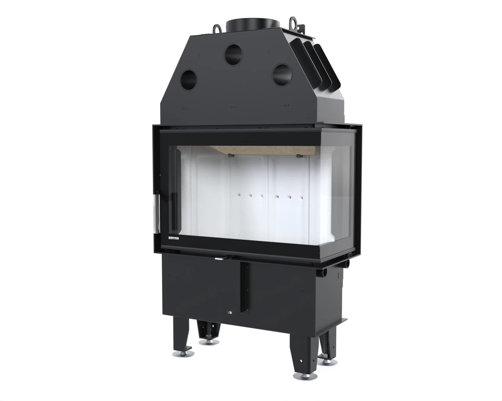 Opłomki to system rur wewnątrz paleniska, które wpływają na zwiększenie wydajności kominka. Działają poprzez wydłużenie drogi spalin i lepsze dopalanie resztek paliwa. W Intra SM BP Slim efekt wzmocniono dodatkowo przez obecność ceramitonu i odpowiednio ukształtowanego deflektora.