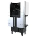 Korpus wkładu kominkowego Defro Home Intra tworzy solidną obudowę dla komory spalania, gwarantując trwałość i odporność na wysokie temperatury. Wykonany jest ze stali o grubości 3 mm, co zapewnia wyjątkową wytrzymałość i długowieczność urządzenia nawet w intensywnym użytkowaniu. Podłoga wkładu pełni funkcję komory wlotowej dla powietrza, zapewniając jego prawidłowy dopływ, niezbędny do procesu spalania. Wnętrze komory spalania wyłożone jest żaroodpornymi panelami z betonu ceramicznego, które pokrywają ściany boczne i tylną, zwiększając jej odporność na działanie wysokich temperatur oraz zapewniając odpowiednią izolację cieplną. Front komory zamykają stalowe drzwi z żaroodporną szybą, wyposażone w precyzyjny zamek, co zwiększa bezpieczeństwo użytkowania.