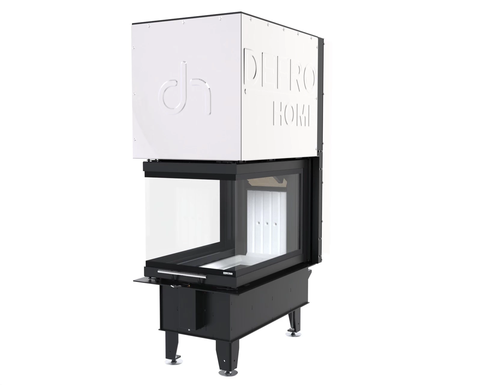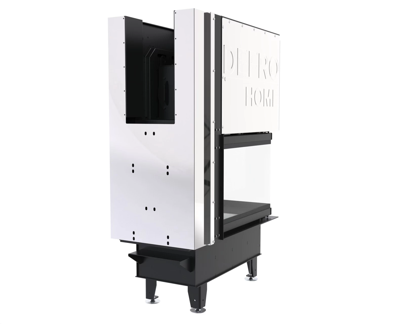 Korpus wkładu kominkowego Defro Home Intra tworzy solidną obudowę dla komory spalania, gwarantując trwałość i odporność na wysokie temperatury. Wykonany jest ze stali o grubości 3 mm, co zapewnia wyjątkową wytrzymałość i długowieczność urządzenia nawet w intensywnym użytkowaniu. Podłoga wkładu pełni funkcję komory wlotowej dla powietrza, zapewniając jego prawidłowy dopływ, niezbędny do procesu spalania. Wnętrze komory spalania wyłożone jest żaroodpornymi panelami z betonu ceramicznego, które pokrywają ściany boczne i tylną, zwiększając jej odporność na działanie wysokich temperatur oraz zapewniając odpowiednią izolację cieplną. Front komory zamykają stalowe drzwi z żaroodporną szybą, wyposażone w precyzyjny zamek, co zwiększa bezpieczeństwo użytkowania.