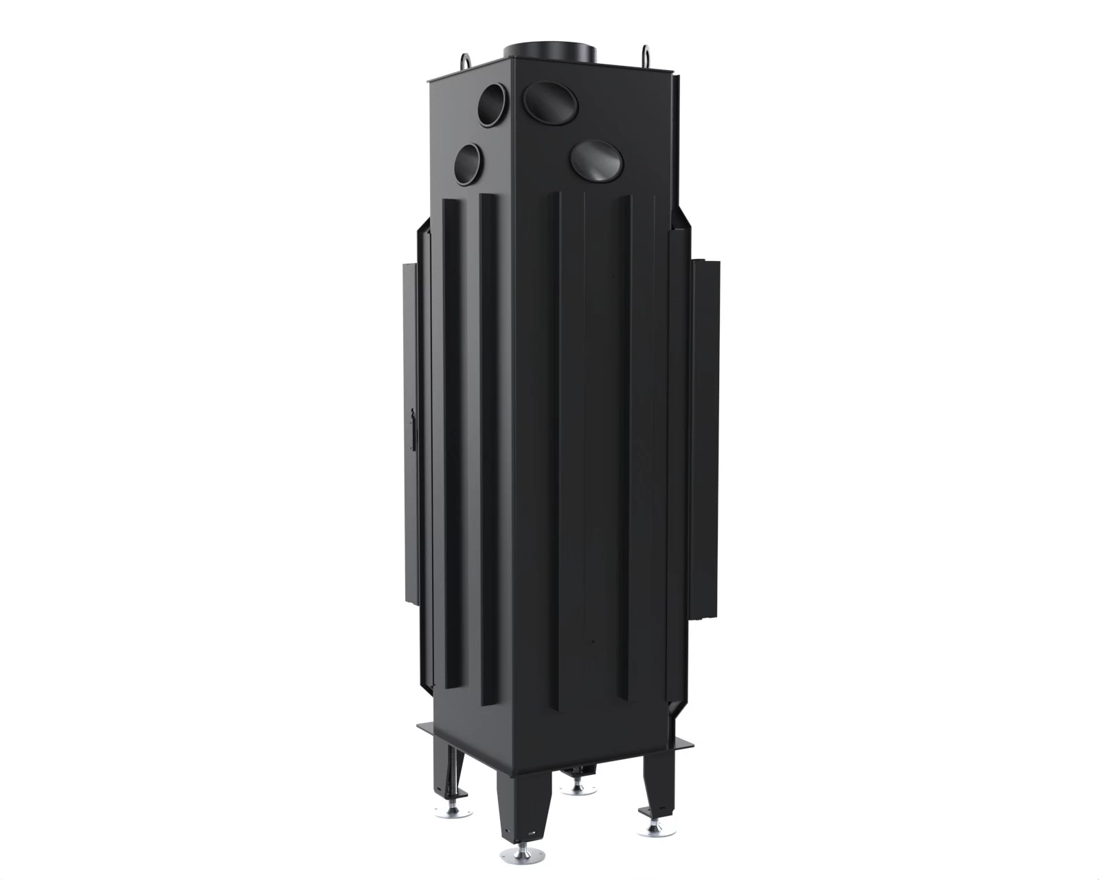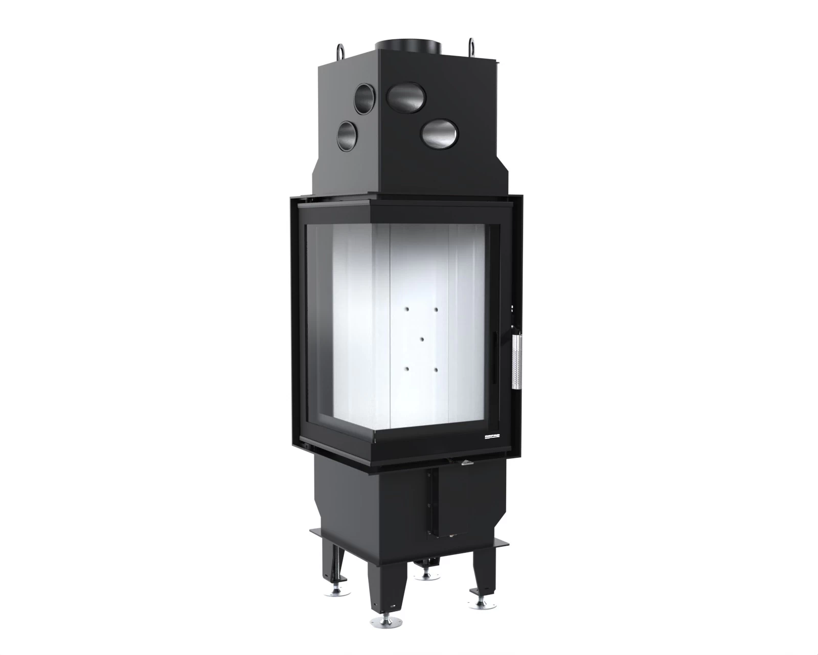 Spaliny odprowadzane są przez wylot kominowy umieszczony w górnej części wkładu, co gwarantuje skuteczne i bezpieczne usuwanie produktów spalania. Dzięki zastosowanym rozwiązaniom technologicznym, odpowiedniemu paliwu oraz prawidłowej eksploatacji, kominek zapewnia wysoką wydajność cieplną, wygodę użytkowania i czystą szybę przez dłuższy czas.