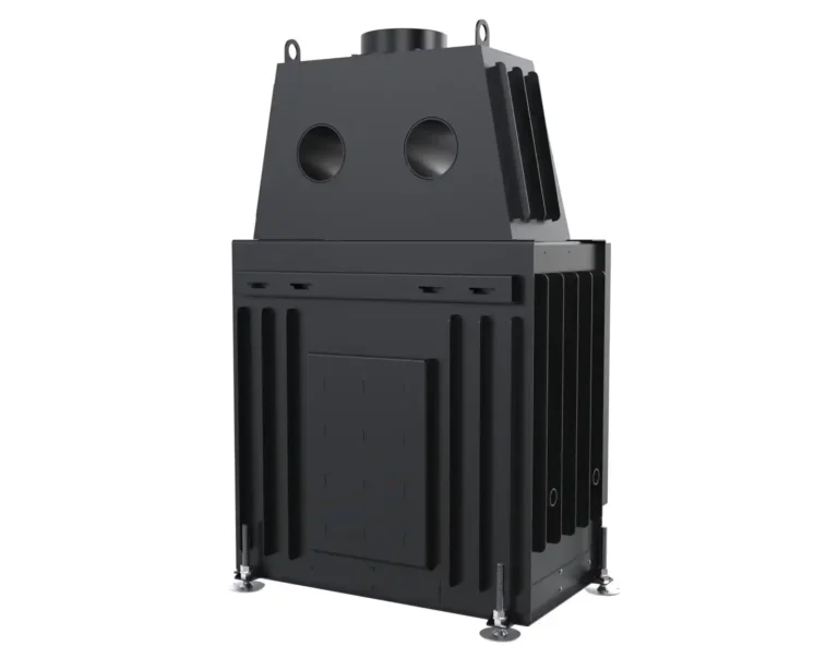 Spaliny odprowadzane są przez wylot kominowy umieszczony w górnej części wkładu, co gwarantuje skuteczne i bezpieczne usuwanie produktów spalania. Dzięki zastosowanym rozwiązaniom technologicznym, odpowiedniemu paliwu oraz prawidłowej eksploatacji, kominek zapewnia wysoką wydajność cieplną, wygodę użytkowania i czystą szybę przez dłuższy czas.