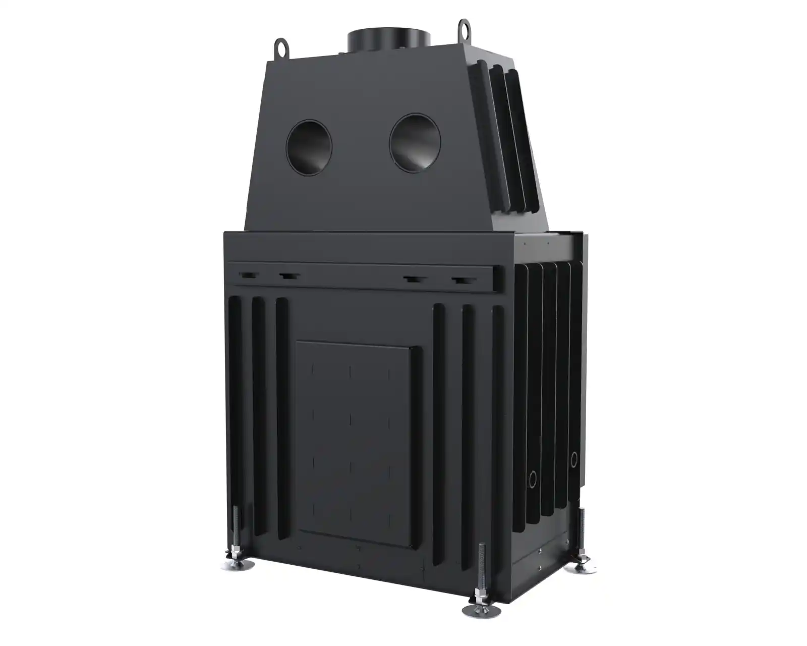 Stalowy korpus bocznego wkładu kominkowego DEFRO HOME PORTAL tworzy solidną obudowę dla komory spalania, gwarantując trwałość i odporność na wysokie temperatury. Wykonany jest ze stali kotłowej o grubości 3 mm, co zapewnia wyjątkową wytrzymałość i długowieczność urządzenia nawet w intensywnym użytkowaniu. Podłoga wkładu pełni funkcję komory wlotowej powietrza, co zapewnia prawidłowy dopływ niezbędny do procesu spalania. Wnętrze komory spalania wyłożone jest żaroodpornymi panelami z betonu ceramicznego, które pokrywają ściany boczne i tylną, zwiększając jej odporność na działanie wysokich temperatur oraz zapewniając odpowiednią izolację cieplną. Front komory zamykają stalowe drzwi z żaroodporną szybą, wyposażone w precyzyjny zamek, co zwiększa bezpieczeństwo użytkowania.