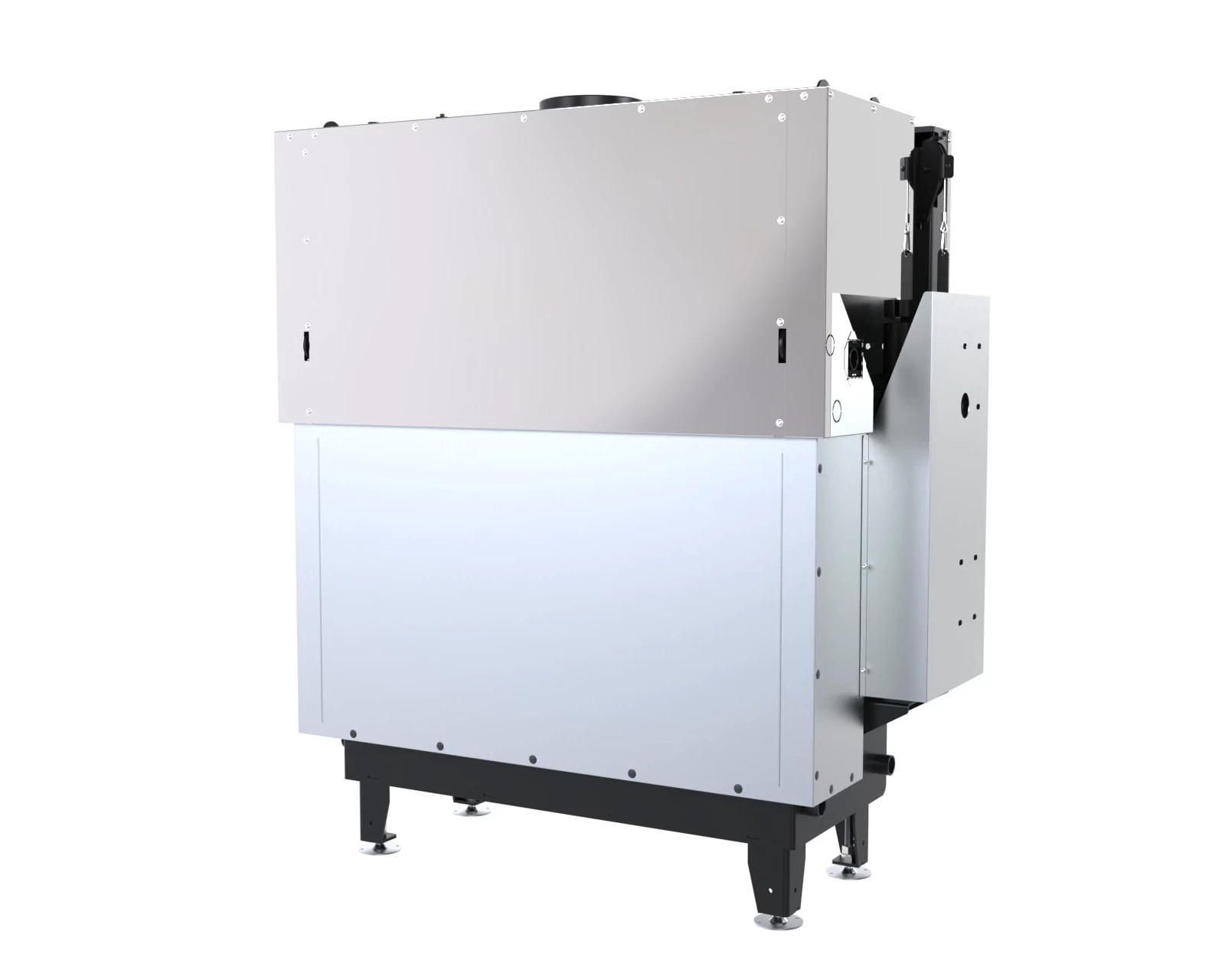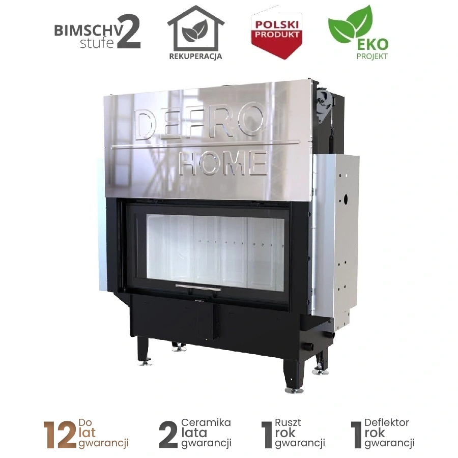 Stalowy korpus bocznego wkładu kominkowego DEFRO HOME RIVA LA G tworzy solidną obudowę dla komory spalania, gwarantując trwałość i odporność na wysokie temperatury. Wykonany jest ze stali kotłowej o grubości 3 mm, co zapewnia wyjątkową wytrzymałość i długowieczność urządzenia nawet w intensywnym użytkowaniu. Podłoga wkładu pełni funkcję komory wlotowej powietrza, co zapewnia prawidłowy dopływ niezbędny do procesu spalania. Wnętrze komory spalania wyłożone jest żaroodpornymi panelami z betonu ceramicznego, które pokrywają ściany boczne i tylną, zwiększając jej odporność na działanie wysokich temperatur oraz zapewniając odpowiednią izolację cieplną. Front komory zamykają stalowe drzwi z żaroodporną szybą, wyposażone w precyzyjny zamek, co zwiększa bezpieczeństwo użytkowania.