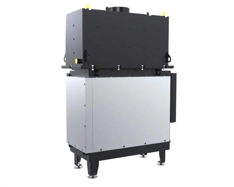 Spaliny odprowadzane są przez wylot kominowy umieszczony w górnej części wkładu, co gwarantuje skuteczne i bezpieczne usuwanie produktów spalania. Dzięki zastosowanym rozwiązaniom technologicznym, odpowiedniemu paliwu oraz prawidłowej eksploatacji, kominek zapewnia wysoką wydajność cieplną, wygodę użytkowania i czystą szybę przez dłuższy czas.