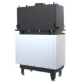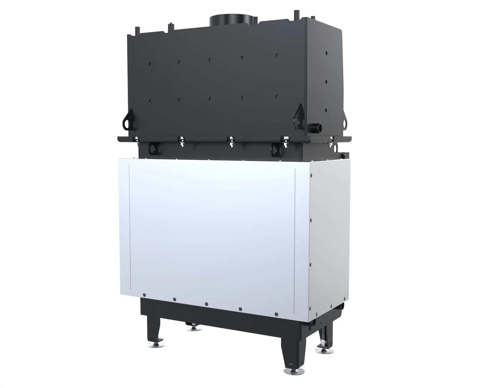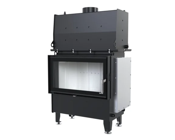 Stalowy korpus bocznego wkładu kominkowego DEFRO HOME RIVA tworzy solidną obudowę dla komory spalania, gwarantując trwałość i odporność na wysokie temperatury. Wykonany jest ze stali kotłowej o grubości 3 mm, co zapewnia wyjątkową wytrzymałość i długowieczność urządzenia nawet w intensywnym użytkowaniu. Podłoga wkładu pełni funkcję komory wlotowej powietrza, co zapewnia prawidłowy dopływ niezbędny do procesu spalania. Wnętrze komory spalania wyłożone jest żaroodpornymi panelami z betonu ceramicznego, które pokrywają ściany boczne i tylną, zwiększając jej odporność na działanie wysokich temperatur oraz zapewniając odpowiednią izolację cieplną. Front komory zamykają stalowe drzwi z żaroodporną szybą, wyposażone w precyzyjny zamek, co zwiększa bezpieczeństwo użytkowania.
