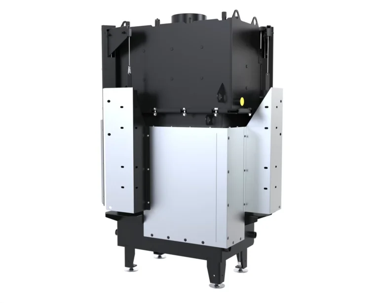 Spaliny odprowadzane są przez wylot kominowy umieszczony w górnej części wkładu, co gwarantuje skuteczne i bezpieczne usuwanie produktów spalania. Dzięki zastosowanym rozwiązaniom technologicznym, odpowiedniemu paliwu oraz prawidłowej eksploatacji, kominek zapewnia wysoką wydajność cieplną, wygodę użytkowania i czystą szybę przez dłuższy czas.