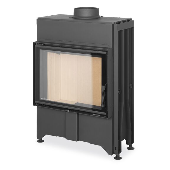 DYNAMIC fireplace inserts are well suited for low-energy houses thanks to their double and triple glazing. The glass in the doors includes a design print. Fireplace inserts are equipped with an EAI (external air intake) system and designed for accumulation as well as convection operation. The combustion chamber is lined with chamotte bricks and a hinged iron grate with an ash tray. Secondary air intake washes over the glass in the door to prevent the cumulation of deposits. Primary and secondary air intake is regulated by a single control element. A MAMMOTH side accumulation set and upper accumulation rings can be purchased separately for fireplace inserts, which can extend the period of heat radiation by more than 12 hours. The innovative DOUBLE SPIN flue gas system increases efficiency and reduces the environmental impact of the fireplace insert.