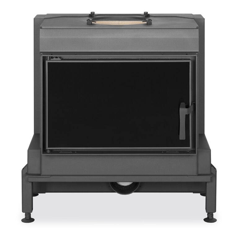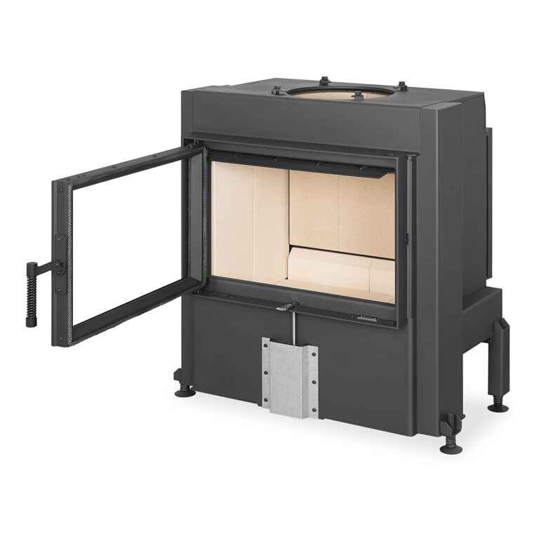 DYNAMIC fireplace inserts have a design print on the double glazed door (suitable for low-energy houses when installed with accumulation casing). They have an external air intake (EAI) system, and are designed for closed, built-in accumulation. The combustion chamber is lined with 5 cm thick chamotte bricks and thanks to the secondary air intake, the glass on the door is constantly “washed” to prevent the build-up of deposits. The primary and secondary (tertiary) air intake can be regulated by a single control element. DYNAMIC fireplace inserts are not supplied with smoke extraction components (spigot). The customer must buy these separately as accessories according to the intended use. The fireplace insert cannot be connected directly to the chimney.
