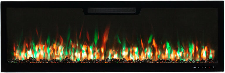 The fireplace can also be turned on and off with voice commands using the Amazon Alexa assistant.