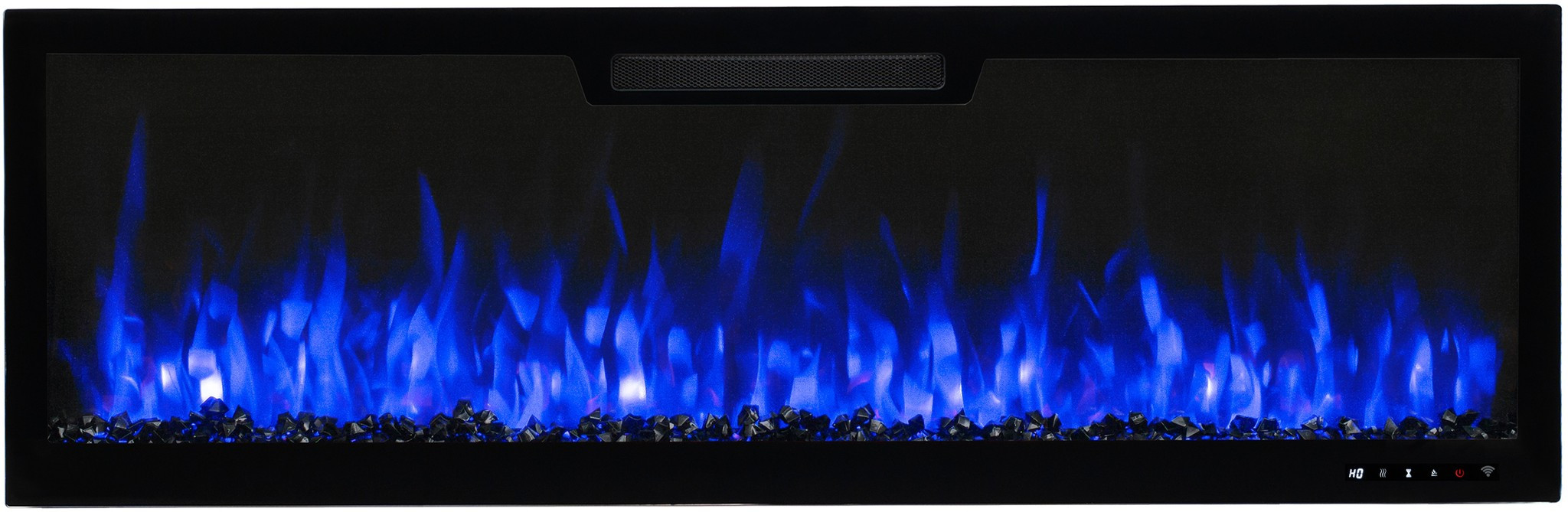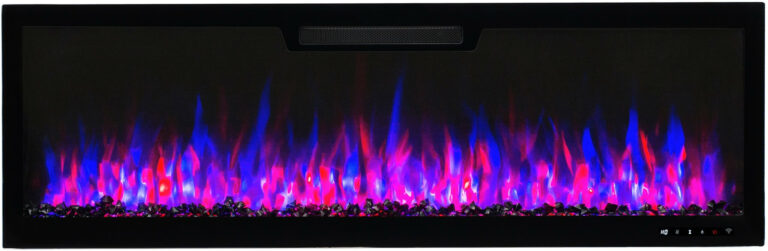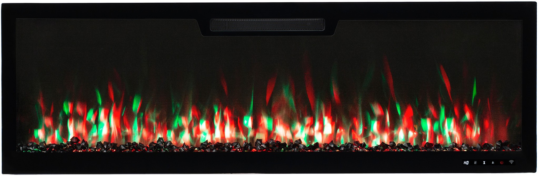 The fireplace can also be turned on and off with voice commands using the Amazon Alexa assistant.