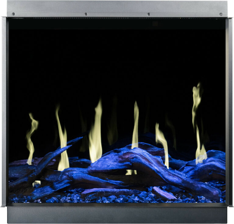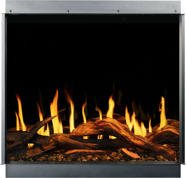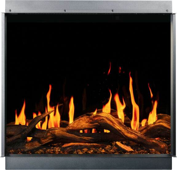 The Gold fireplace comes with translucent logs that give the impression of glowing wood..
