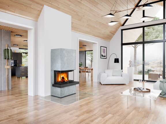 Design accumulation fireplaces Romotop CARA response to the trends and needs of modern interior architecture. Finely balanced proportions, clean lines and dominant three-side glazing creates an impressive complex satisfying even the most demanding customers.
