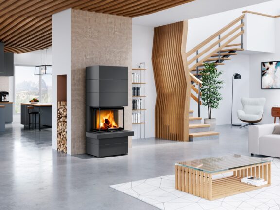 Design accumulation fireplaces Romotop CARA response to the trends and needs of modern interior architecture. Finely balanced proportions, clean lines and dominant three-side glazing creates an impressive complex satisfying even the most demanding customers.