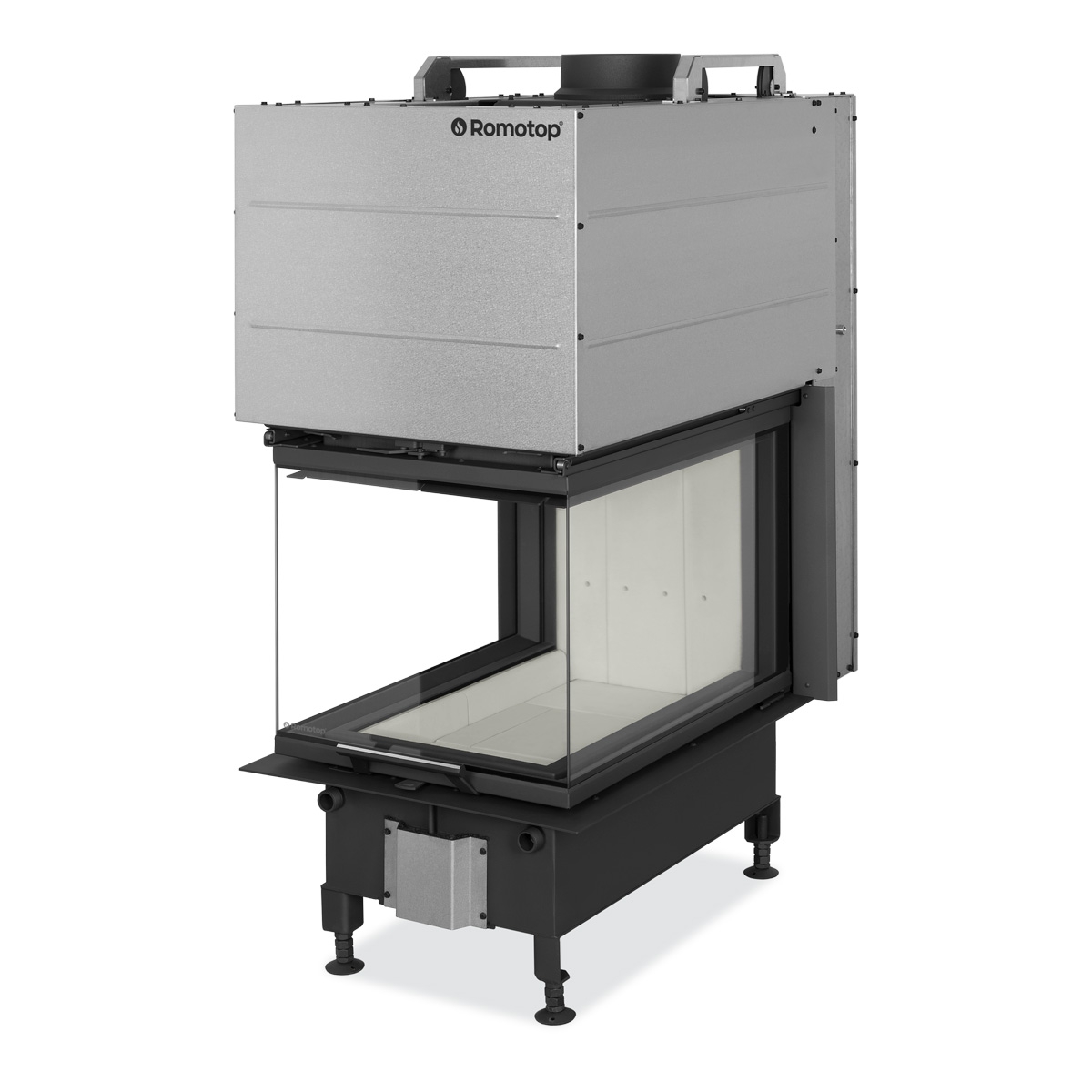 The clean right-angle geometry of door glazing is the defining feature of the whole design of HEAT fireplace inserts with three-sided glazing and extending doors. The generous glazing means you can experience the play of living flames to the fullest.