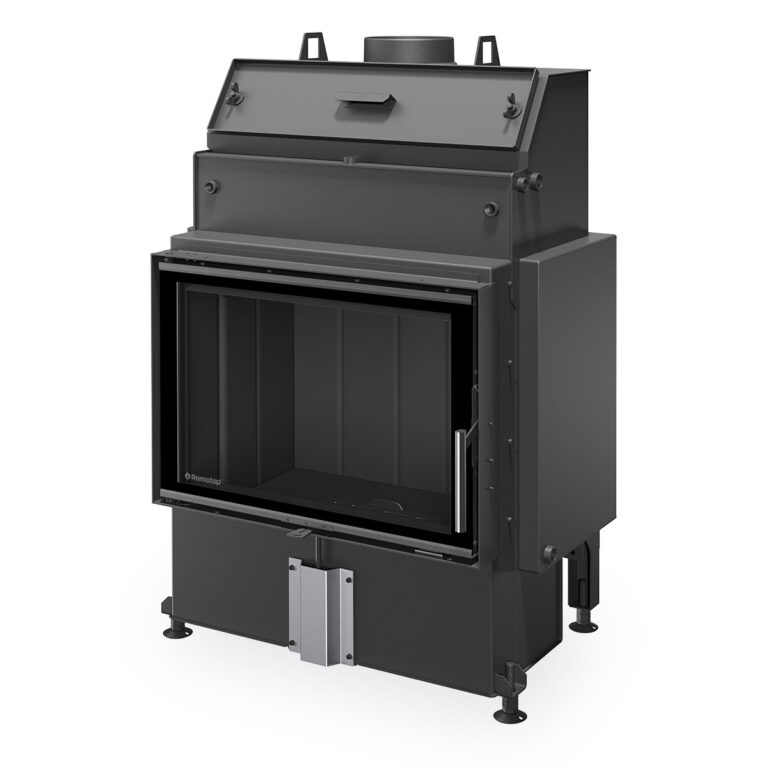 HEAT fireplace inserts with a hot-water exchanger come with TRIPLE PASS, a special patented design hot-water exchanger that will increase fireplace insert efficiency by up to 10%. The door frame is made of a special rigid rolled profile. Fireplace inserts are equipped with an EAI (external air intake) system and designed for convection operation. The combustion chamber is lined with a special durable material called IGNITON, available in white or black, according to the customer’s preference. Secondary air intake washes over the glass in the door to prevent the cumulation of deposits. Primary and secondary air intake is regulated by a single control element. Safety is ensured by an integrated cooling loop and the package also includes air-escape valve. A cleaning opening to easily clean the hot-water exchanger further adds to user comfort.